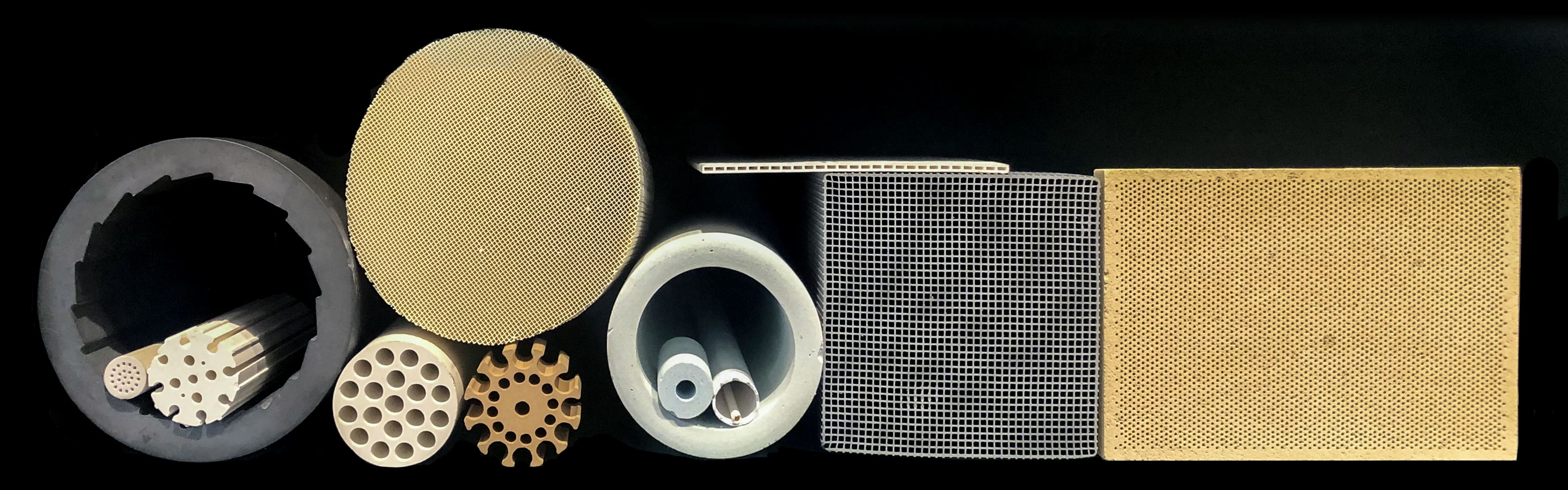 nonceramic bodies; bricks and tiles, filter plates and multichannel tubes, insulators, honeycombs, fuel cells and all kinds of ceramic and nonceramic profiles.